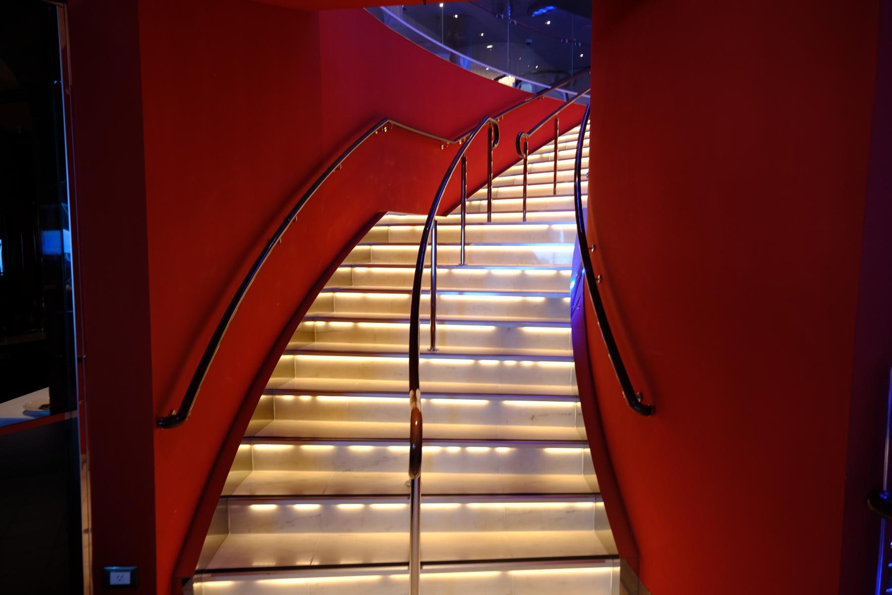 De trap om van dek 10 naar het Lido zwembad te gaan op dek 9