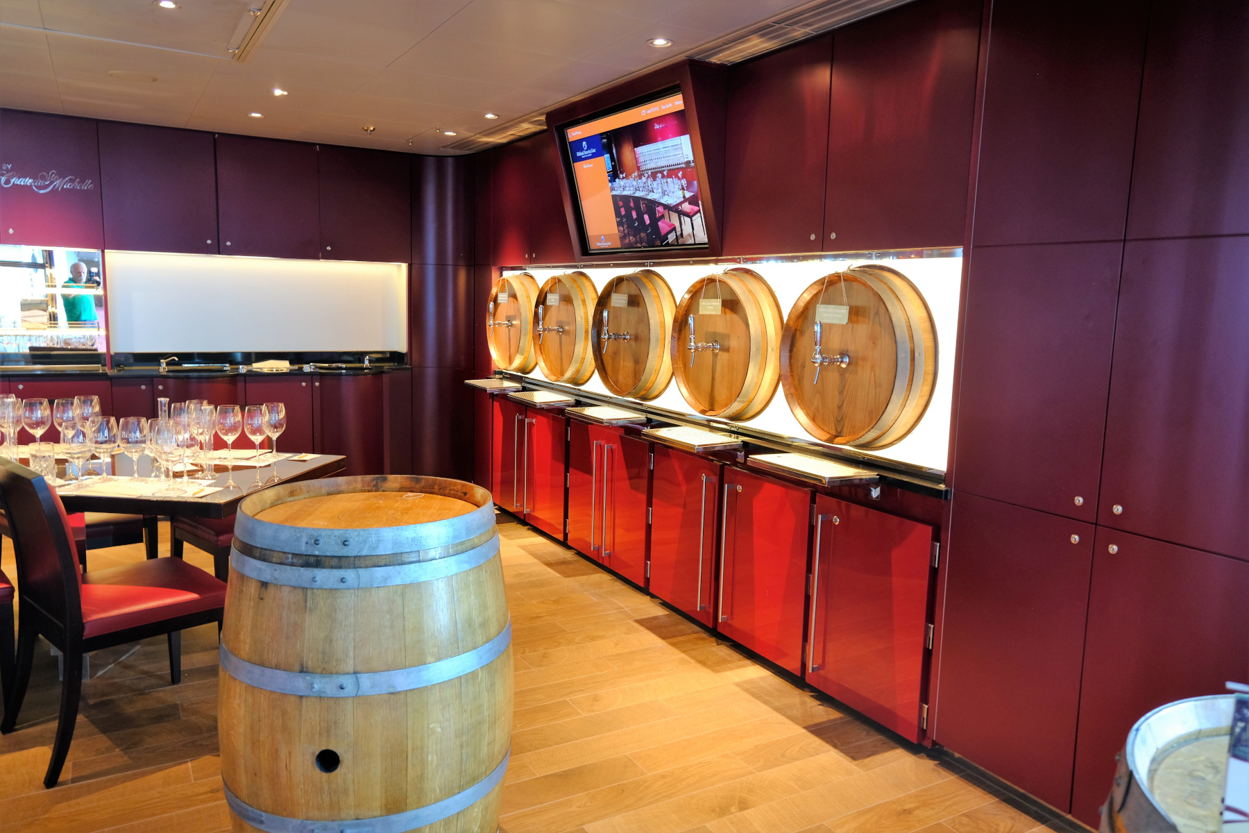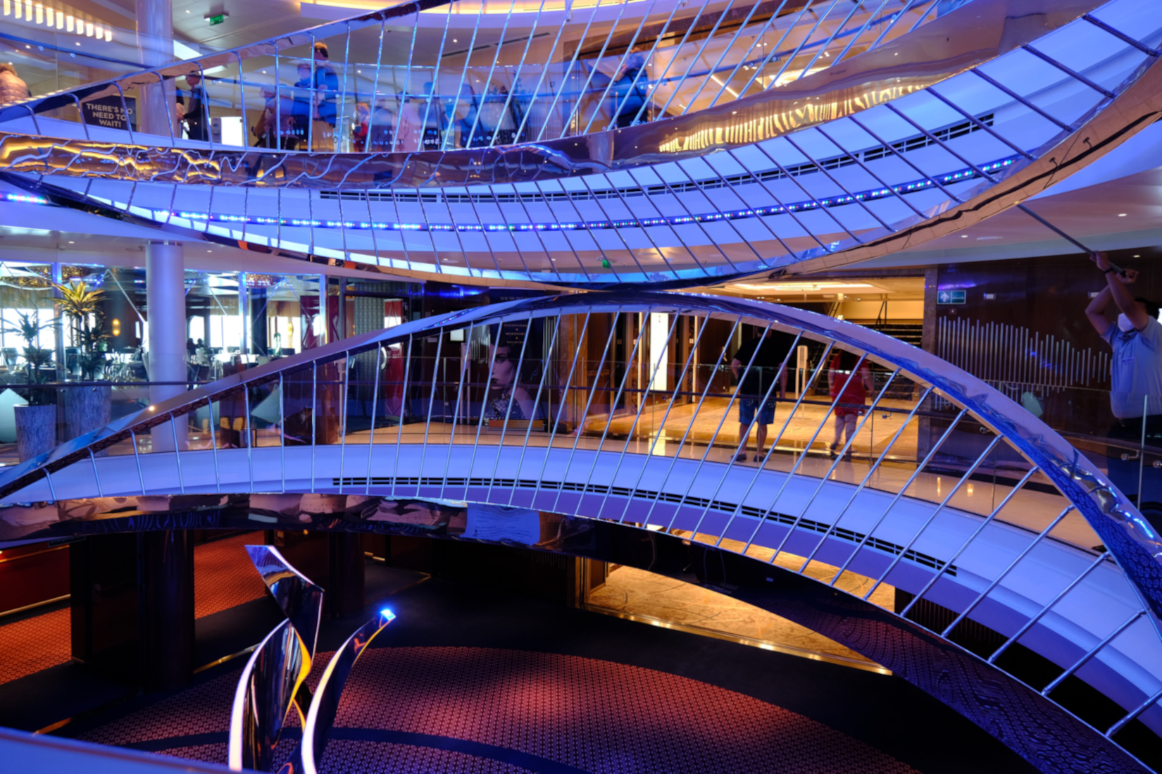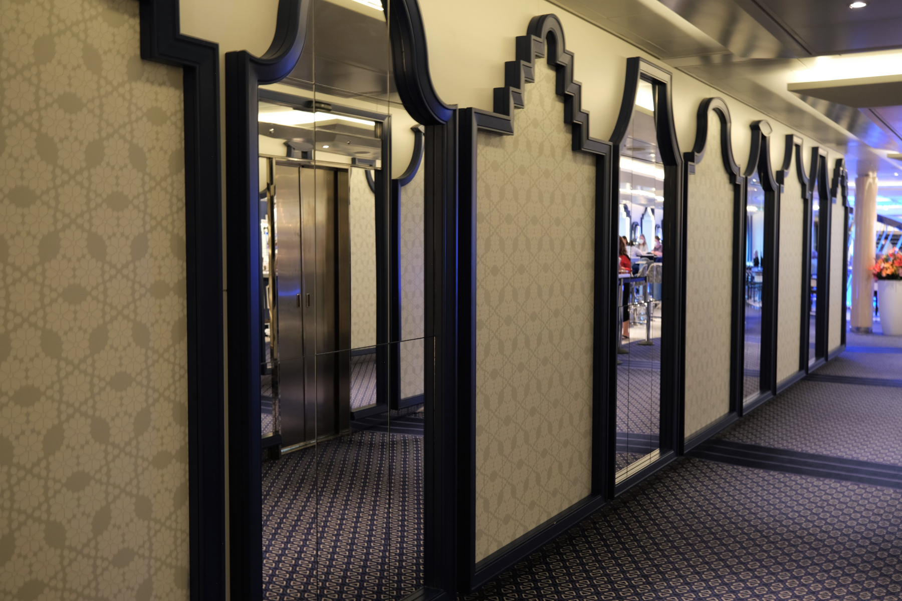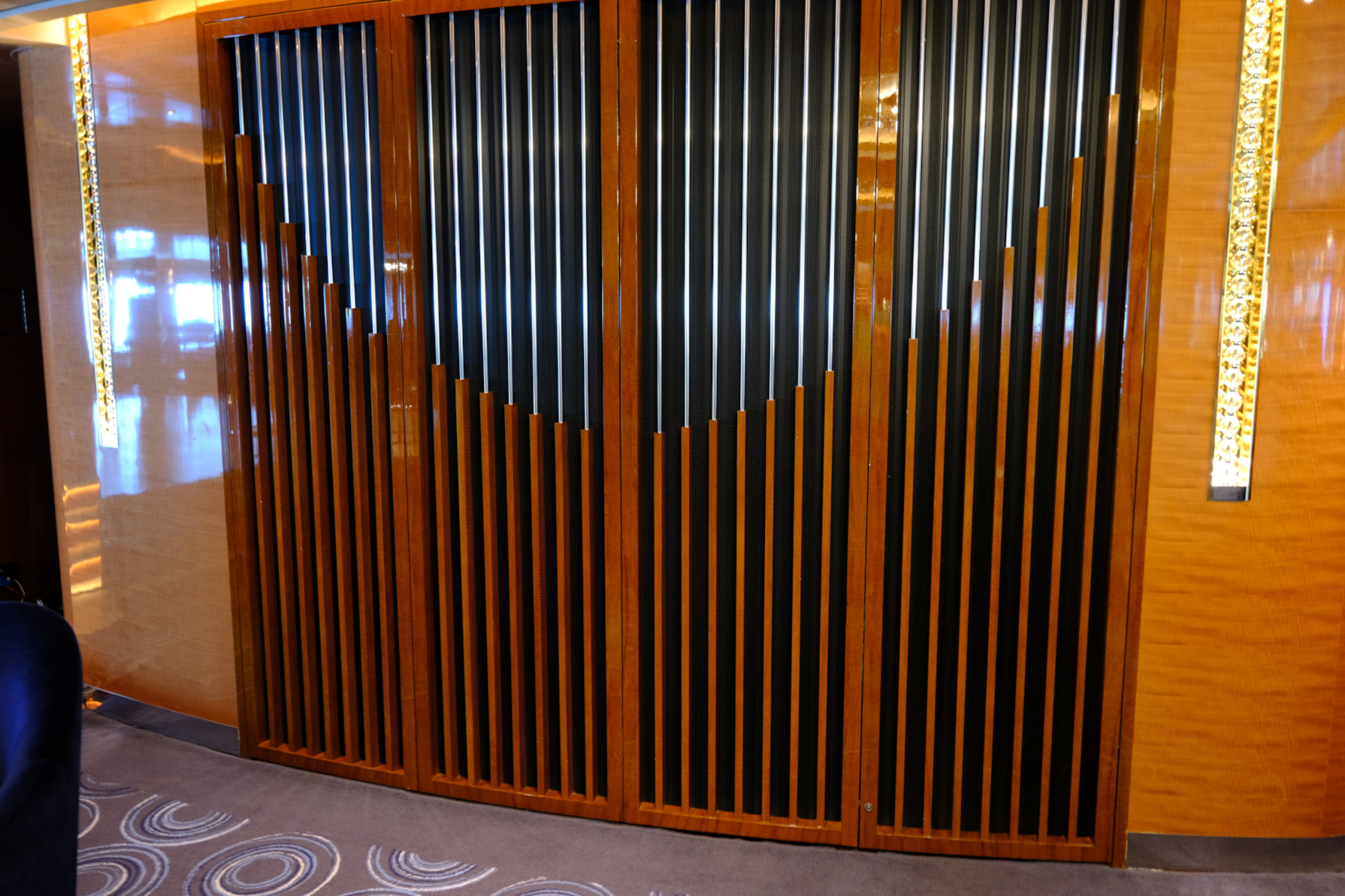 Op de Pinnacle class schepen is muziek best wel een thema. Hier een wand wat geïnspireerd is door orgelpijpen. Alhoewel sommigen er meer de snaren van een harp inzien.
