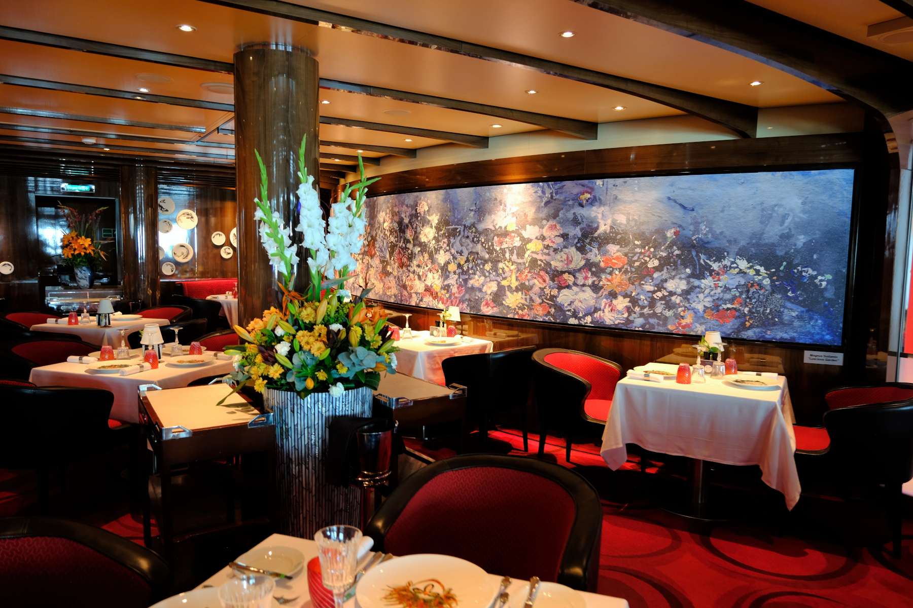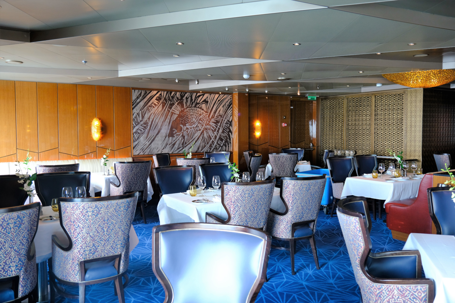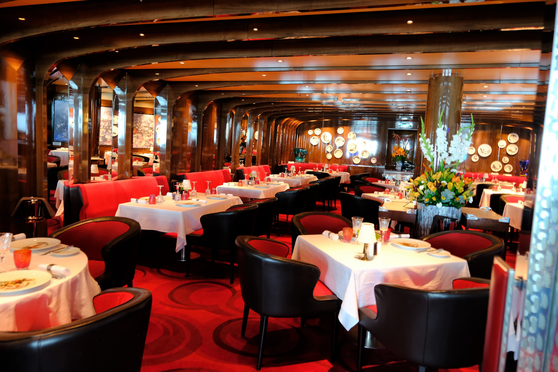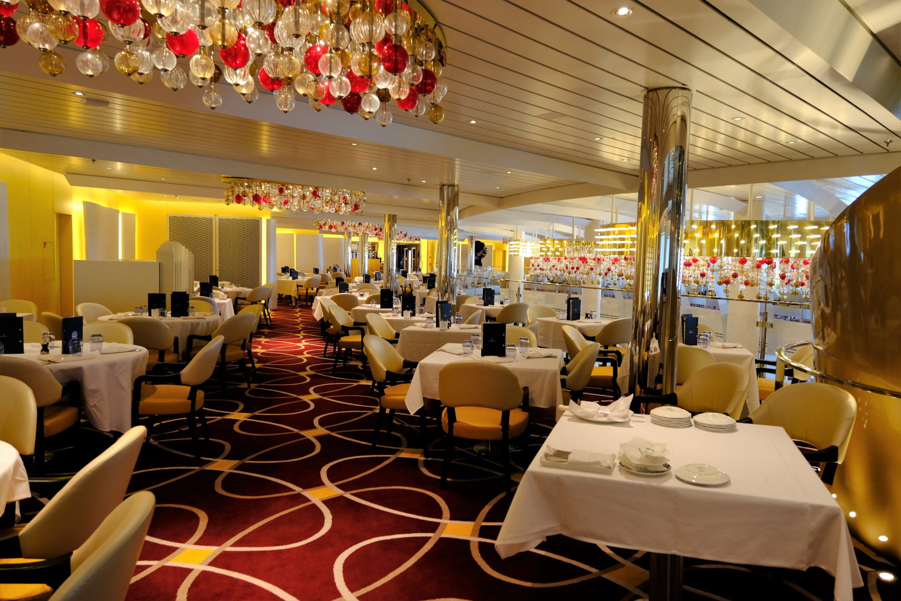De main dining room is te vinden aan de achterkant van het schip, zowel op dek 2, Plaza Dek, als zoals hier op dek 3, Promenade dek.