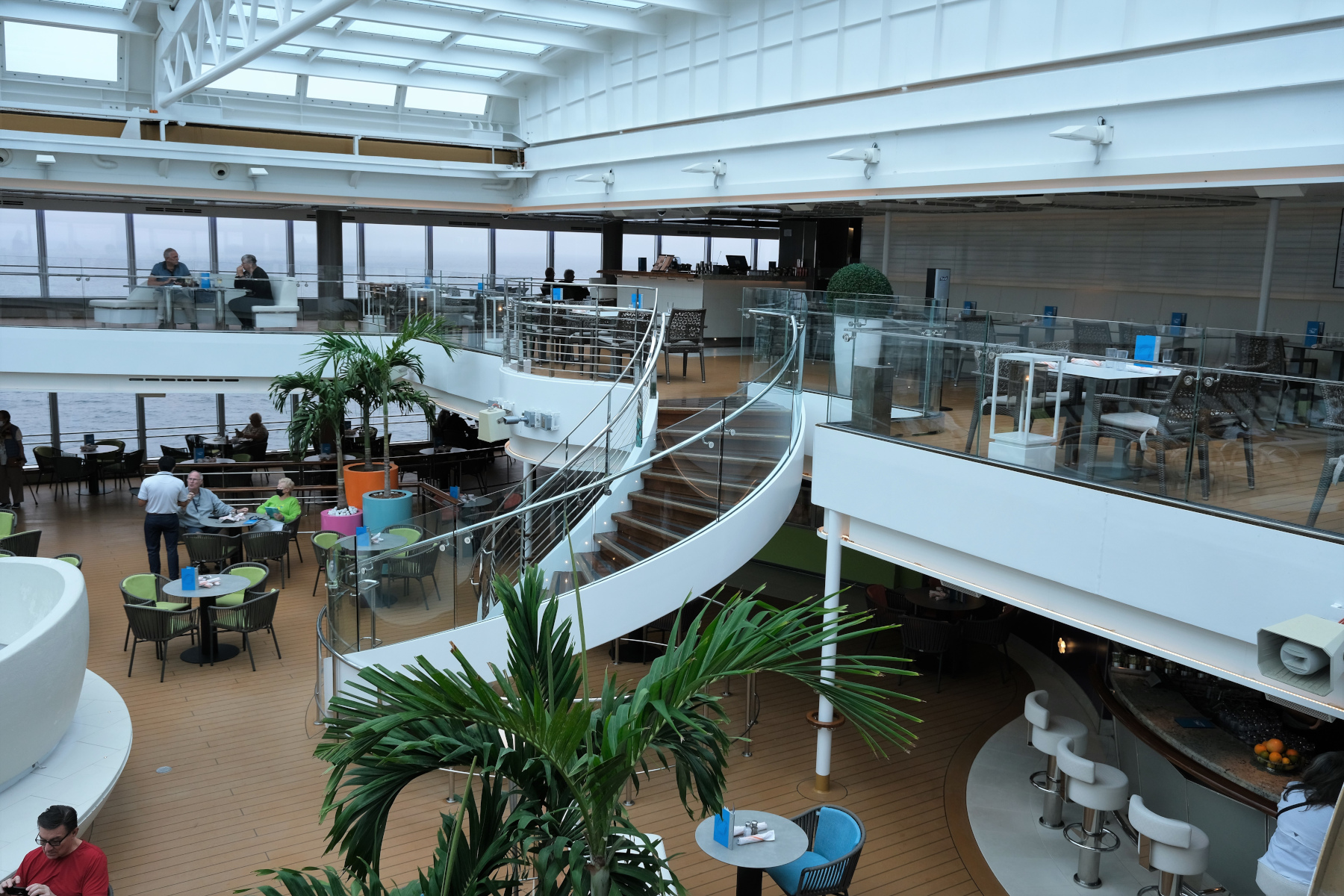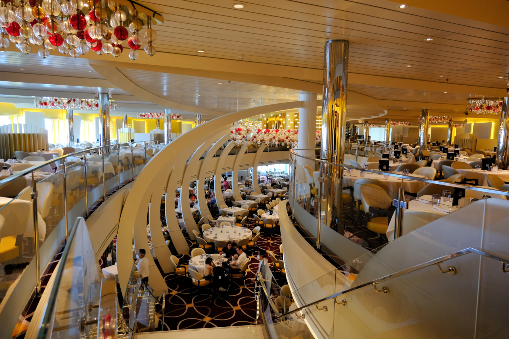 De Main Dining Room op Dek 2. Dek 3 is hiervandaan goed te zien