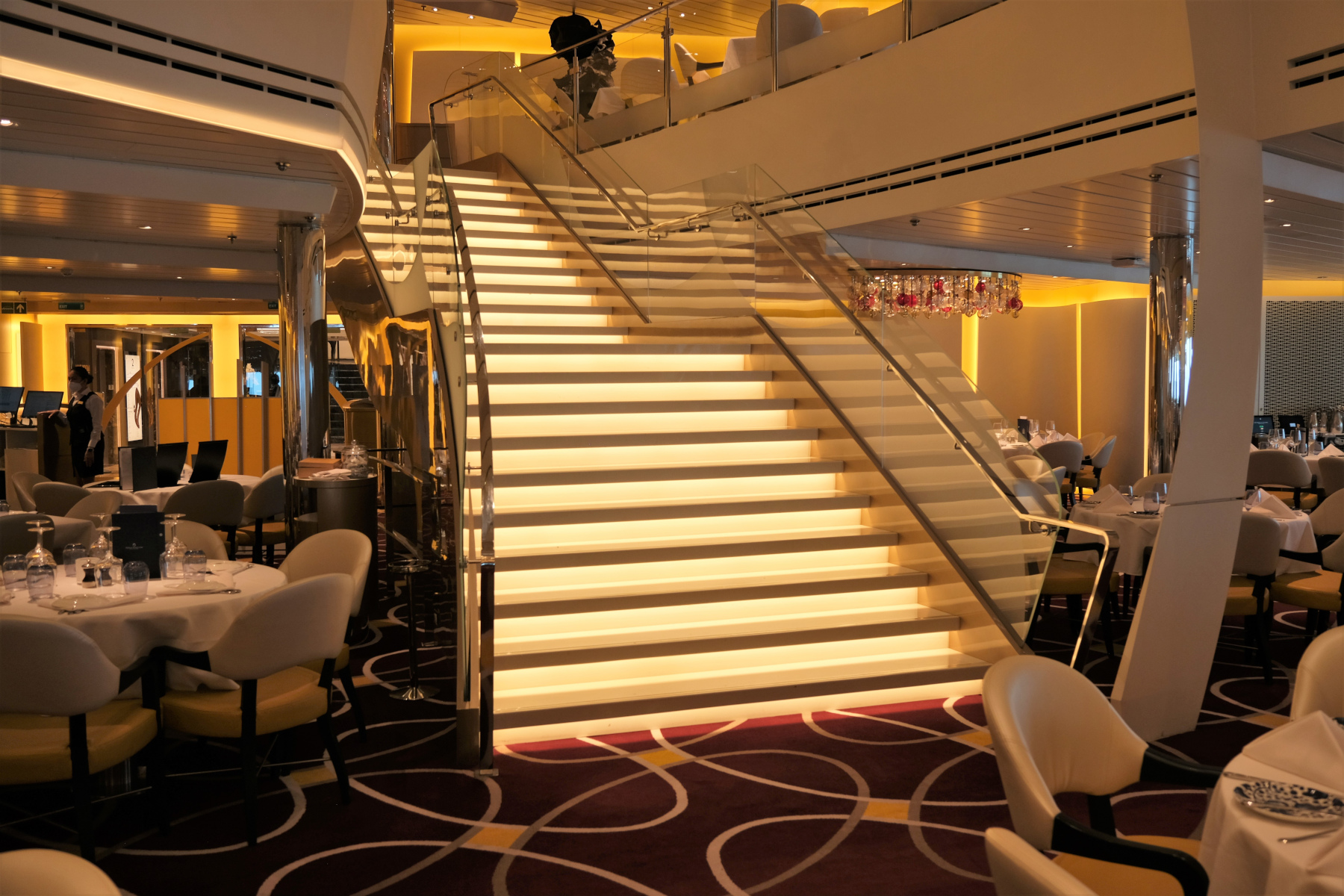 Een mooi overzicht van de Main Dining Room. De trap en de twee dekken.