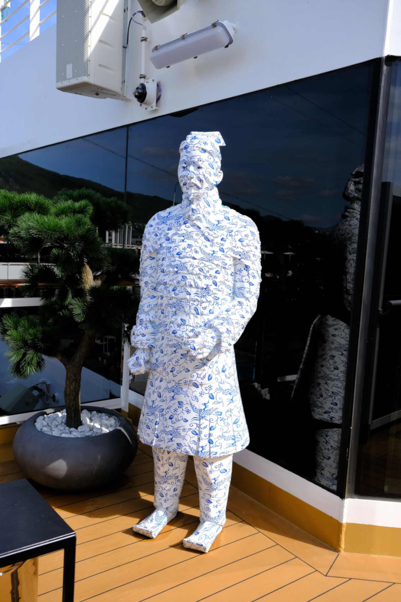 mooi uitzicht op de achterkant van het kunstwerk van Asya Kozina. Het staat bij het Atrium op dek 3